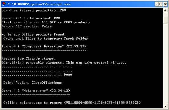 6、執(zhí)行完畢窗口會自動關(guān)閉,窗口關(guān)閉后,就代表您的office程序已經(jīng)卸載成功了,可以進行安裝Microsoft Office 2003的完整版本了。