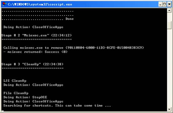 5、執(zhí)行完畢窗口會自動關(guān)閉,窗口關(guān)閉后,就代表您的office程序已經(jīng)卸載成功了,可以進行安裝Microsoft Office 2003的完整版本了。