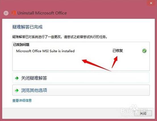 5、如果提示“已修復(fù)”這說明你電腦上的OFFICE軟件已完整的卸載了?梢赃M行安裝Microsoft Office 2003的完整版本了。
