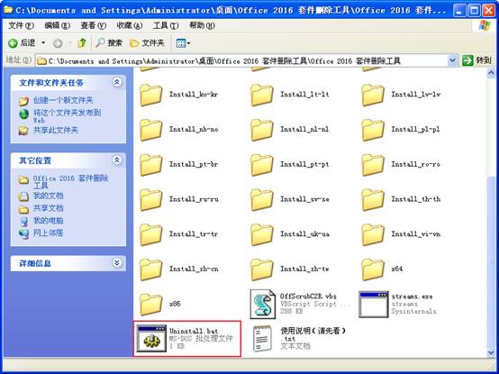 文件夾,打開“Office 2016 套件刪除工具”文件夾。雙擊鼠標(biāo)運行“Uninstall.bat”。