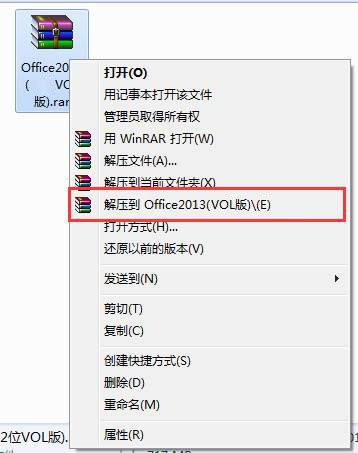2、在安裝包上右擊鼠標(biāo),選擇“解壓到office2013(VOL版)”