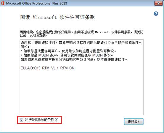 6、勾選“我接受此協(xié)議的條款”,然后點(diǎn)擊繼續(xù)。