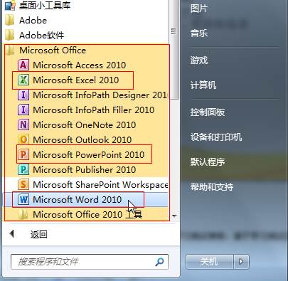 10、在開始菜單——所有程序——Microsoft office ——下面就是全部的Microsoft office2010。