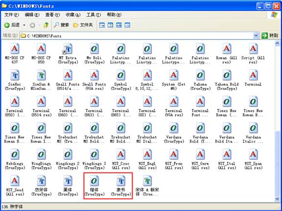 下載字體文件(楷體、隸書、華文彩云、華文細(xì)黑、幼圓等字體)
