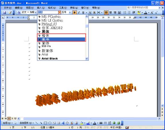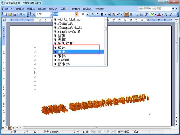 8.回到“Word”中去查看字體,已經(jīng)有了“楷體”、“隸書”字體。